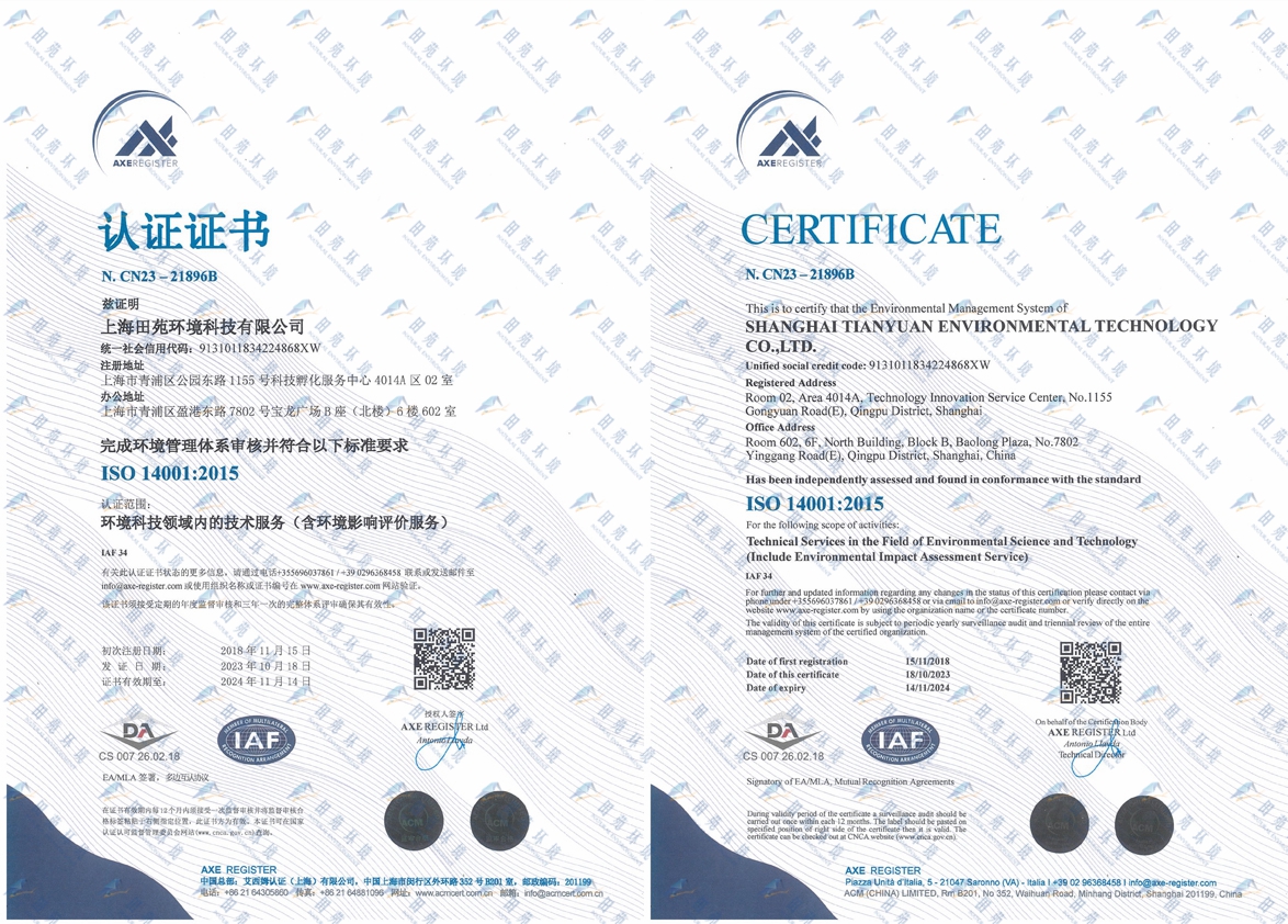 《ISO14001環(huán)境管理體系認證證書》